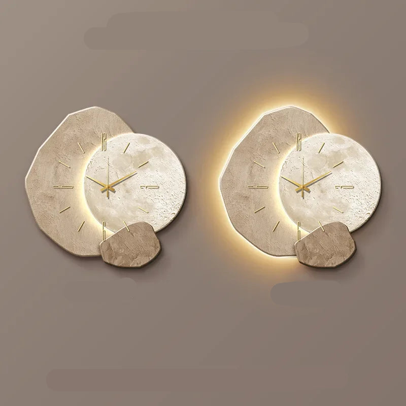 Dette vægur tilføjer karakter og ro til dit hjem med sin støjsvage funktion og kunstneriske form. Den uregelmæssige silhuet og træramme gør det til et blikfang på væggen, mens den store og tydelige urskive sikrer nem aflæsning – selv på afstand.