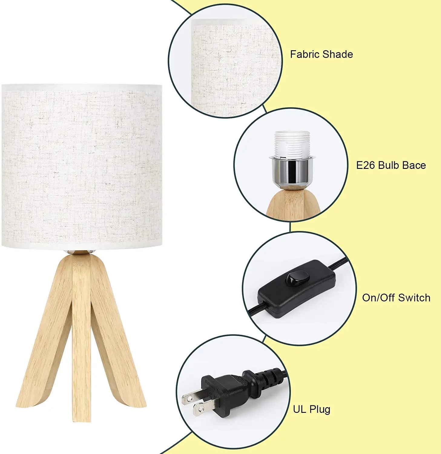 This compact wooden table lamp with a linen shade offers warm, soft illumination for relaxing and atmospheric lighting.